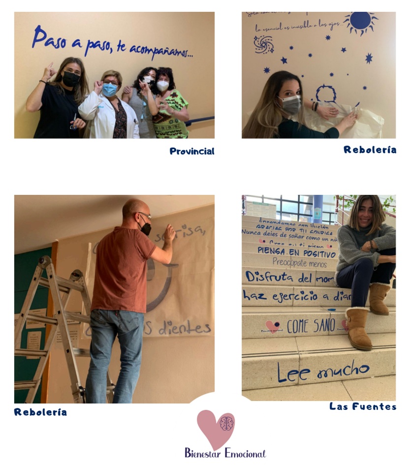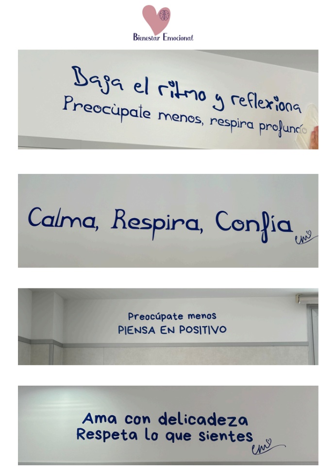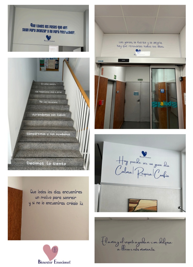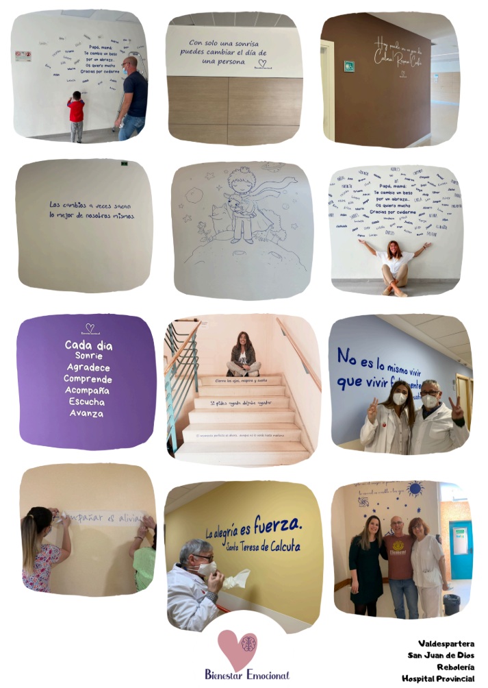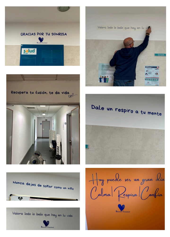 El Proyecto Calma, es un poco de todos, y sobre todo, es para todos. Es de vital importancia la participación y opinión del personal sanitario de cada uno de los centros para elegir juntos los espacios y las frases propuestas que mejor se adaptan al lugar.